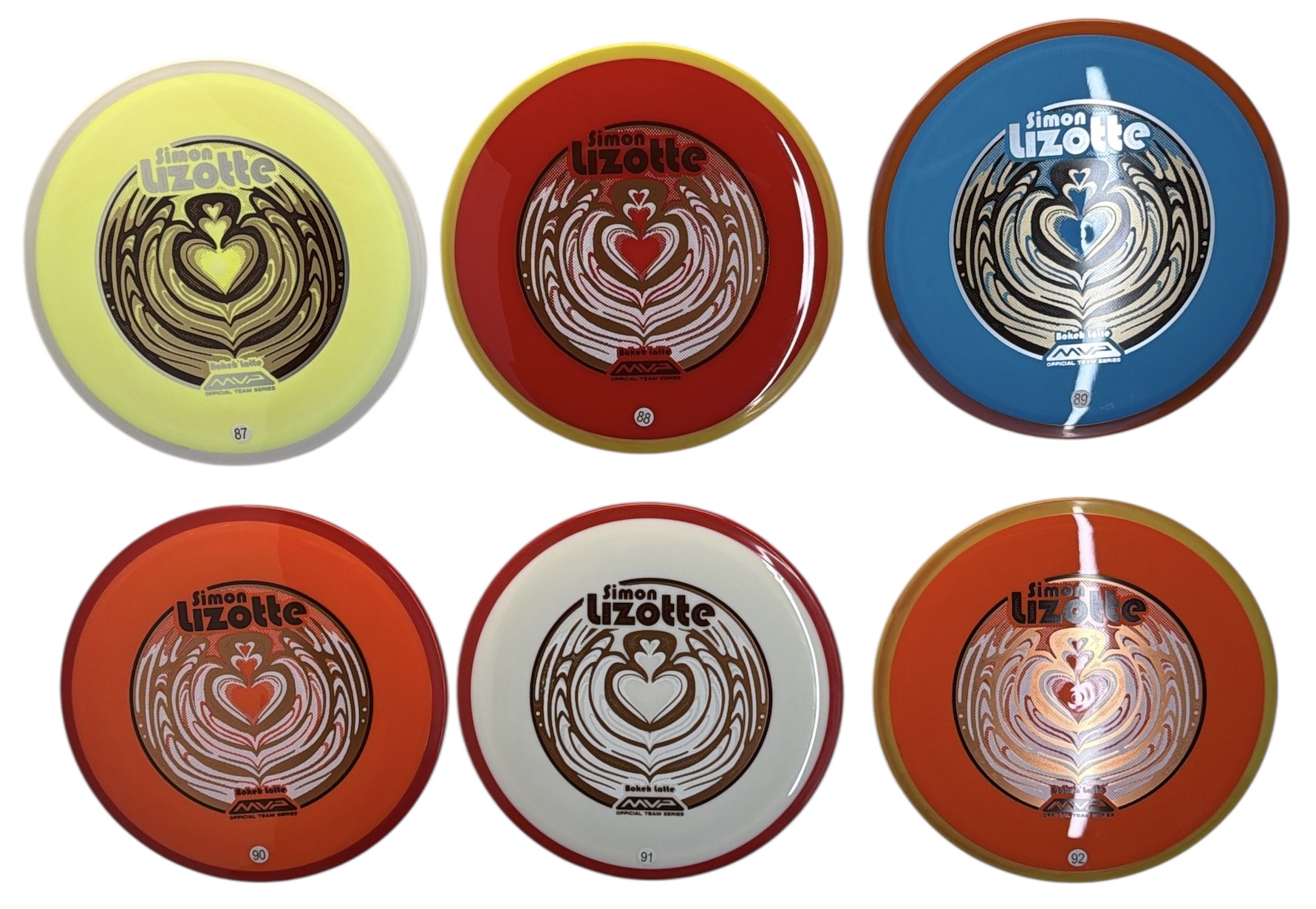 MVP says this about the mold: “Industry veteran Mike Inscho taps into Simon Lizotte’s newfound interest for inspiration on this “bokeh latte” Team Series disc – the quest for the perfect latte, and fairway driver, is complete! The Neutron Bokeh is a stable 7-speed fairway driver with the versatility to do it all. With flight numbers of 7 | 6 | 0 | 1, the Bokeh is more torque-resistant than the Axiom Crave, making it more of a slower Trail. When you factor in the added glide, it’s a perfect choice for long drives on open fairways and carving up holes in the woods. Experience your next favorite disc and grab a Simon Line Bokeh today!”
