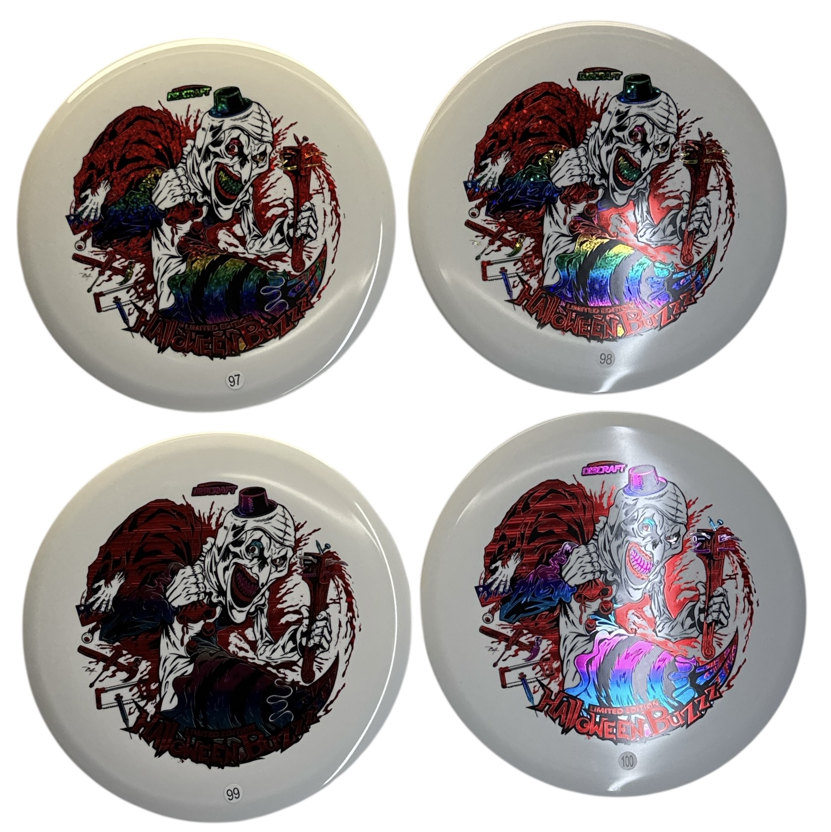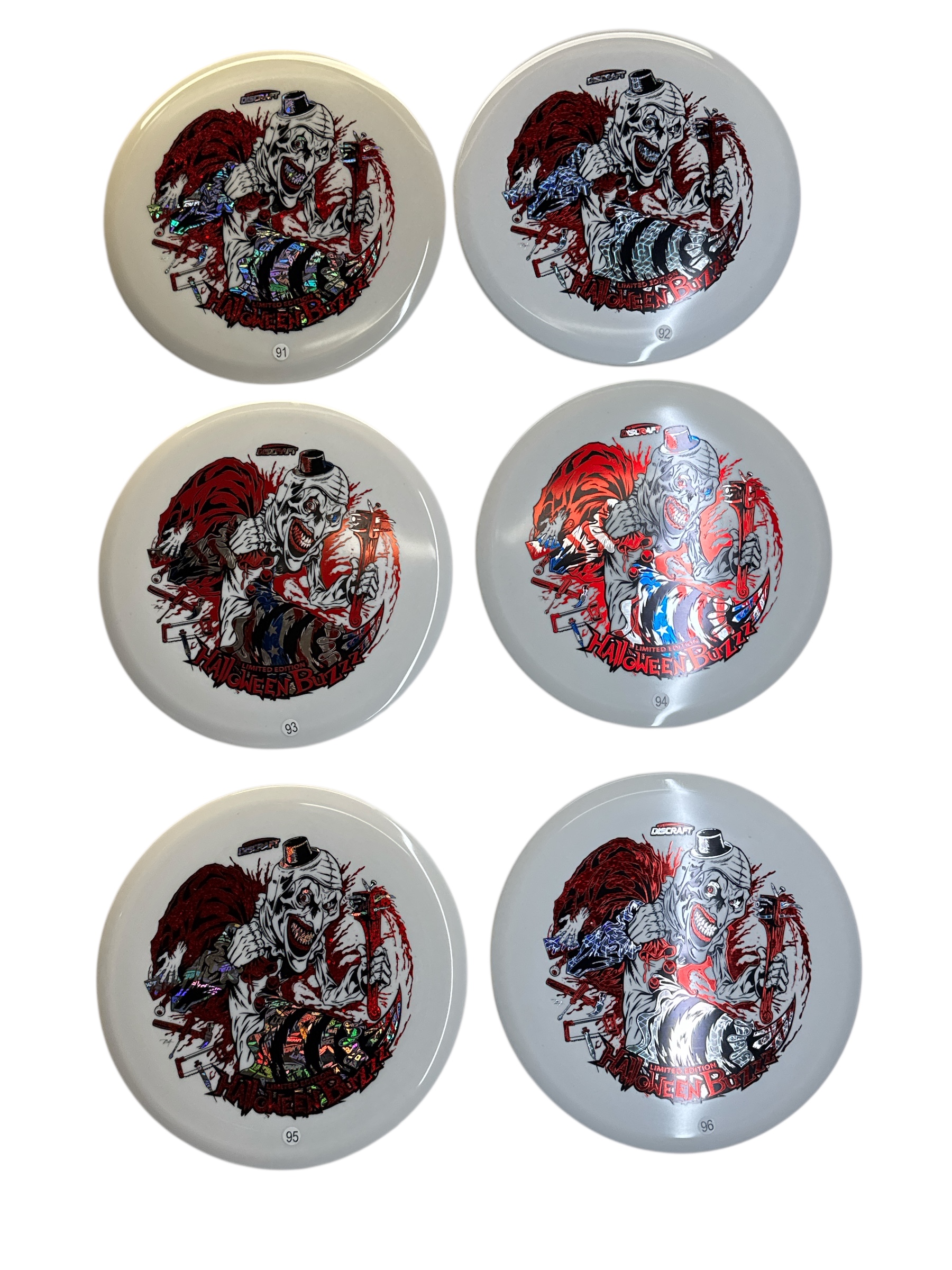 Under the glow of night, the 2025 Tri-Foil Glo Halloween Buzzz emerges from the shadows. An ominous clown silhouette peers from layered foils, casting an eerie shimmer across our classic glow plastic. Precision flight meets bone-chilling style, making this run as haunting in the air as it is on display.