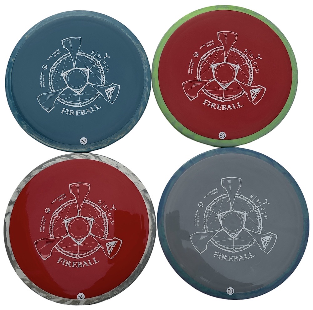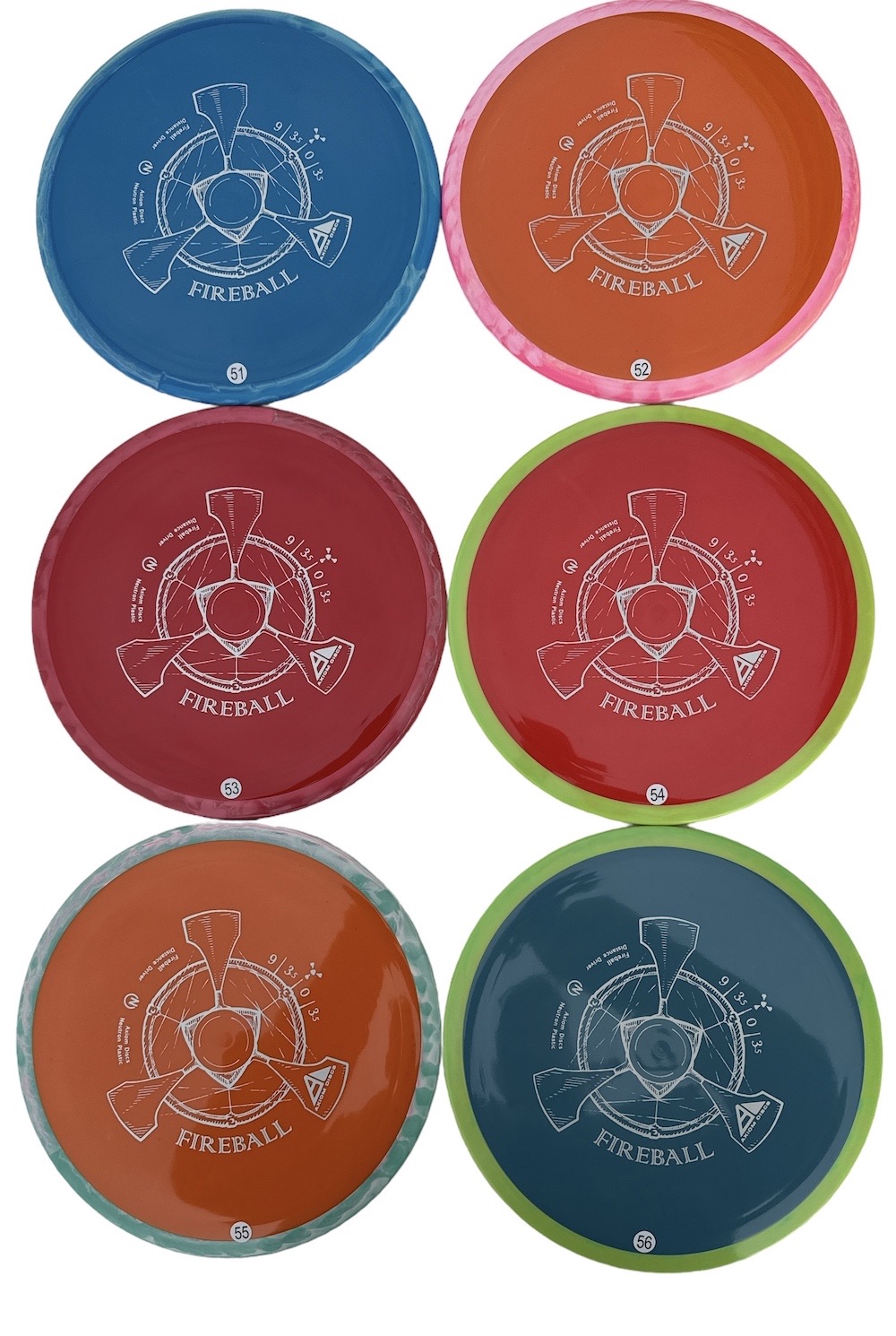 The Fireball is overstable and wind-resistant like the MVP Motion but has an overall straighter and longer flight profile. The Fireball has a longer forward push during its early stage of fade, where the Motion would have begun a long gradual fade. At the end of its flight, the Fireball will drop later and more abruptly than the Motion.