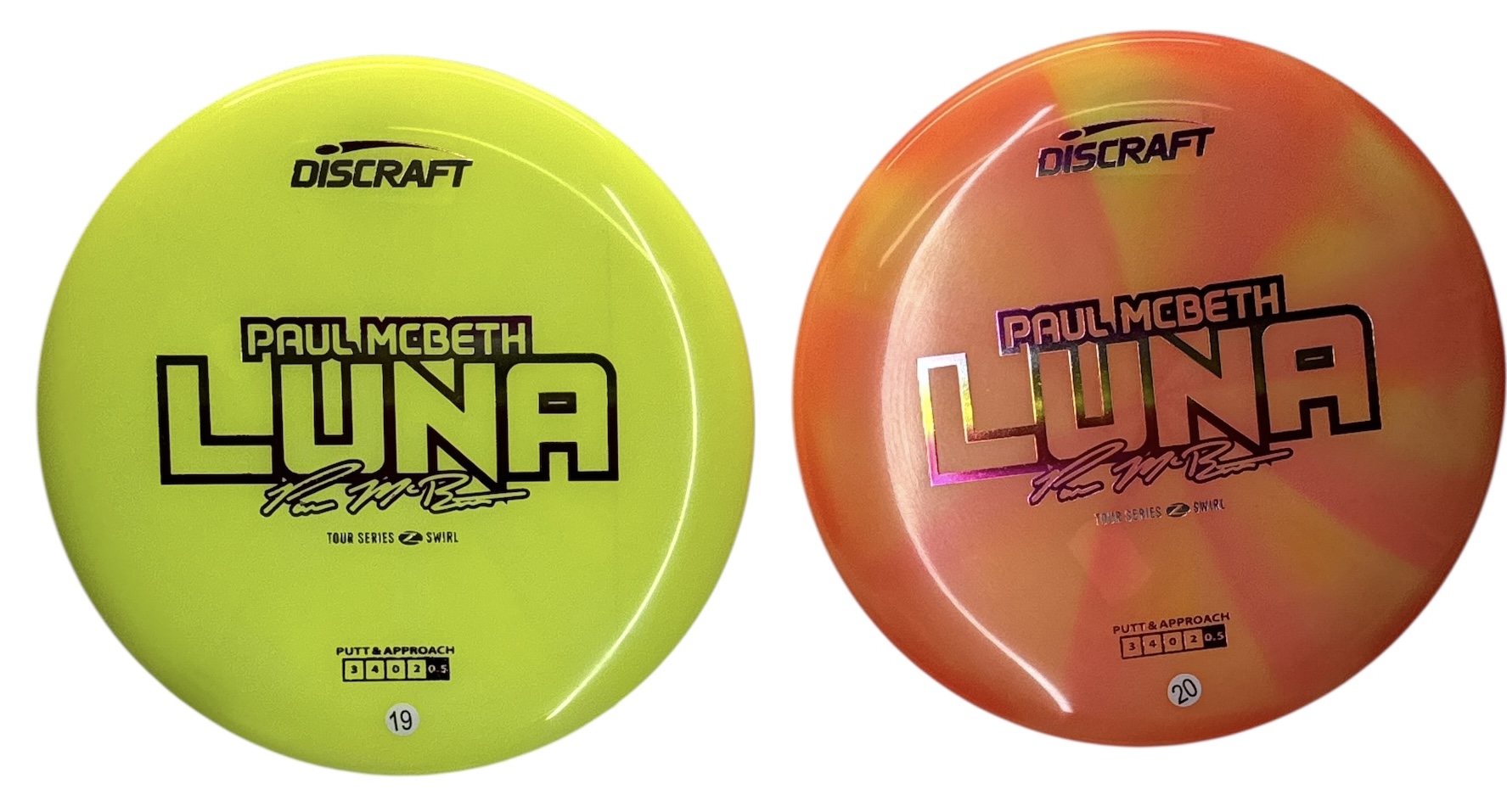 The Luna returns to the Tour Series lineup in Z Swirl plastic—bringing together grip, glide, and confidence in one of the most versatile putt and approach discs ever made. Known for its neutral flight and exceptional control, the Luna shines on the tee, in the circle, and everywhere in between. The 2025 Z Swirl edition offers a touch more stability and a tacky hand feel, giving players even more confidence when shaping lines or attacking the basket. Disc colors, weights and foils may vary.