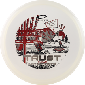 The Trust is a reliable workhorse midrange built for control and confidence. Thrown with power, it flies straight and stable, while slower shots finish with a smooth, gliding fade. Its beadless, smooth rim makes it a great choice for both backhand and forehand throws.