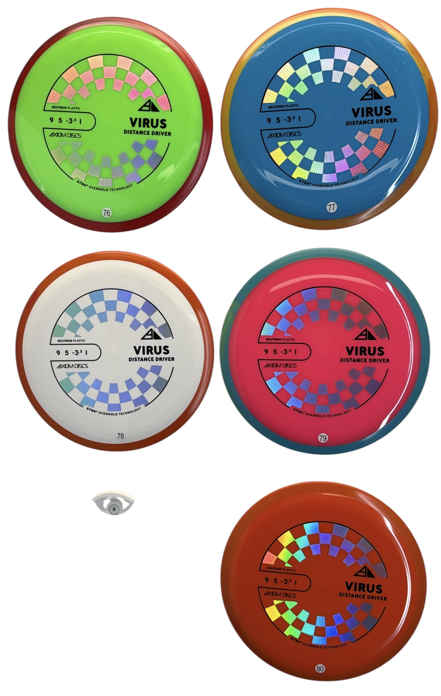 The Virus is Axiom’s easiest to throw distance driver, with a glide and responsive understability that keeps it in the air. Power throwers will be able to flex huge turnover shots with straight forward fade. Average throwers will be able to extend and shape lines using the Virus’ turn and gentle fade. Compared to the MVP lineup, the Virus resembles a worn-in Impulse
